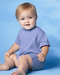 Rib crewneck romper looks like a t-shirt but is all-in-one funwear for the littlest rabbit.