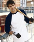 A real team player with contrast color 1x1 rib-knit collar and raglan sleeves.